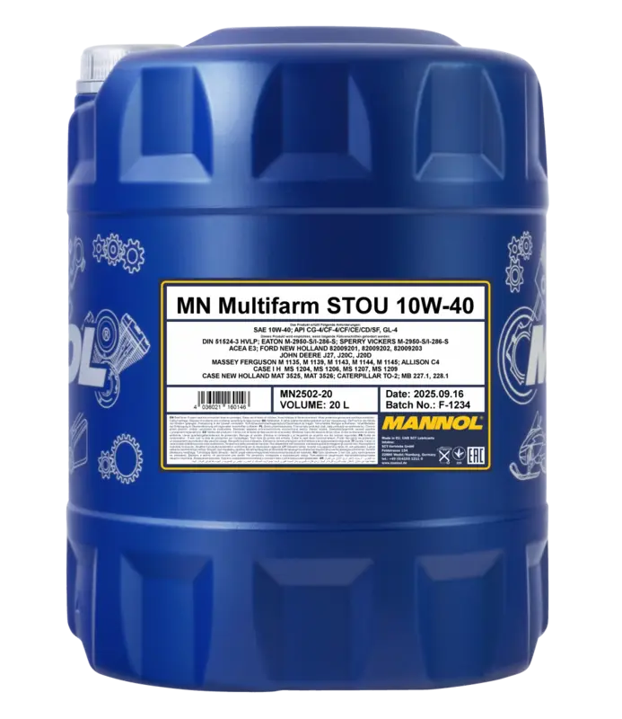 O caracteristică a utilizării utilajelor agricole este dependența ridicată a modului de funcționare de condițiile meteorologice, posibilitatea funcționării non-stop, distanța față de centrele de service, o gamă largă de atașamente suplimentare și, de regulă, pregătirea tehnică scăzută a personalului. Utilizarea MANNOL Multifarm STOU 10W-40 elimină defecțiunile echipamentelor asociate cu confuzia în utilizarea uleiului, atunci când, din cauza depozitării în aer liber, marcajul de pe recipiente sub influența factorilor meteorologici devine ilizibil. Utilizarea uleiului facilitează contabilizarea și depozitarea. Pe teren, este suficient să luați un singur recipient și, în orice situație, să rezolvați problema adăugării de ulei la orice unitate.